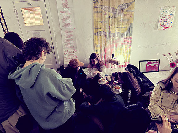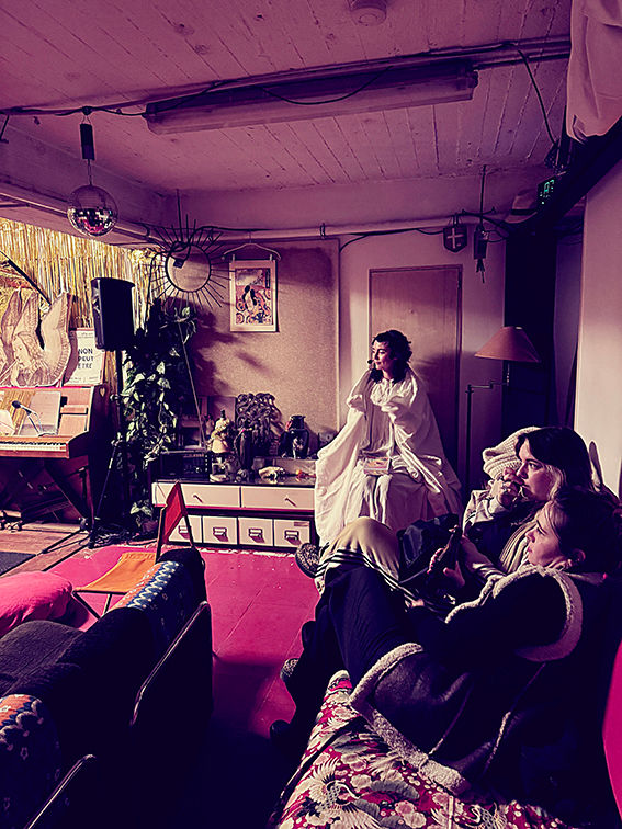 Le centre de beauté culturelle avait donné carte blanche à l’auteur compositeur LIOUBA FRYDMAN (Terrasse N°142, N°193). Personnage non binaire, ancien résident Bruxellois, rapatrié depuis un peu plus d’un an en France sur les côtes bretonnes, dans le Finistère - sur le littoral de la Mer d’Iroise à Douarnenez. A l’occasion de son retour dans la capitale, Liouba Frydman avait alors eu la charge de la programmation culturelle de cette soirée. Tout naturellement ses invités concernaient des artistes de la communauté LGBT+. Il y avait tout d’abord une conférence gesticulée d’ALOIS CHALOPIN. L’artiste emmenait l’auditoire de la terrasse souterraine dans un récit touchant et original. ALOIS CHALOPIN racontait l’histoire passée et bouleversante de sa famille, anciens agriculteurs en Ille-et-vilaine – en Bretagne. Ses grands parents avaient été expropriée de leurs terres par ordre national et cédaient leur domaine au passage d’une autoroute. La ferme dans laquelle vivaient ses ancêtres était ainsi mise à l’abandon. Avant la démolition de celle-ci, une partie de la ferme avait été reconvertie - quelques temps - en un espace d’évènements alternatifs. Puis la bâtisse disparaissait pour laisser sa place à une aire d’autoroute.