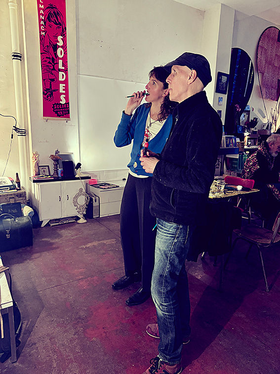 Au terme de ces magistrales représentations créatives, Cayo prenait ses appareils photo comme à son habitude, et prenait le portraits des artistes et quelques clichés des spectateurs. Ces derniers étaient remontés boire un verre, fumer une cigarette roulée, ou une cigarette cousue, un cigare ou encore une cigarette électrique. Certains respiraient simplement cette très belle soirée du FESTIVAL DES DEBUTS. Début du mois d'avril, début du printemps, début du nez, de la bouche, des yeux et des oreilles. D'autres buvaient à table une soupe magique orange, grignotaient un croque monsieur avec ou sans jambon.
